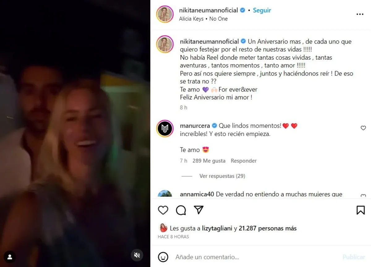 Por este motivo, el dueño del lugar elegido habría decidido dar de baja el evento y la pareja debió ponerse a buscar una nueva locación. Más allá del imprevisto, Nicole hizo caso omiso a las versiones y decidió dedicarle una tierna publicación a su novio para celebrar el aniversario de la pareja.