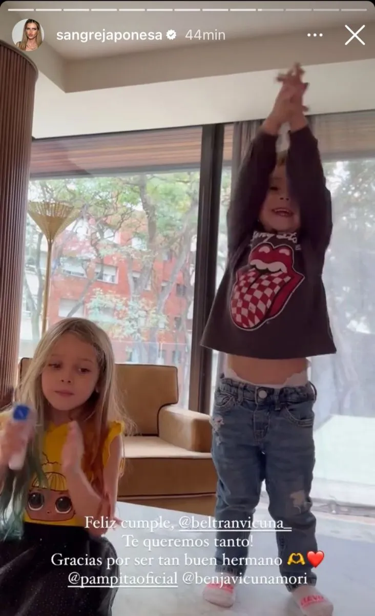 A su vez, la actriz decidió escribir unas palabras junto al video y expresó:“Feliz cumple Beltrán, te queremos tanto. Gracias por ser tan bien hermanito”. Al finalizar, etiquetó a Pampita y a Benjamín junto a emojis de corazón.