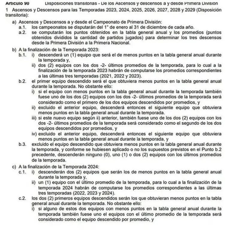 En el comunicado de la entidad, se anunció que se realizarían cambios en dos artículos relacionados con los descensos.