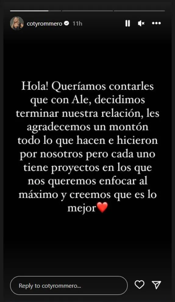 Constanza "Coty" Romero y Alexis "Conejo" Quiroga fueron una de las parejas más queridas que nos quedó de este "Gran Hermano 2022" y si bien parecían haber atravesado algunas crisis, la joven correntina finalmente aclaró que su noviazgo llegó a su fin.