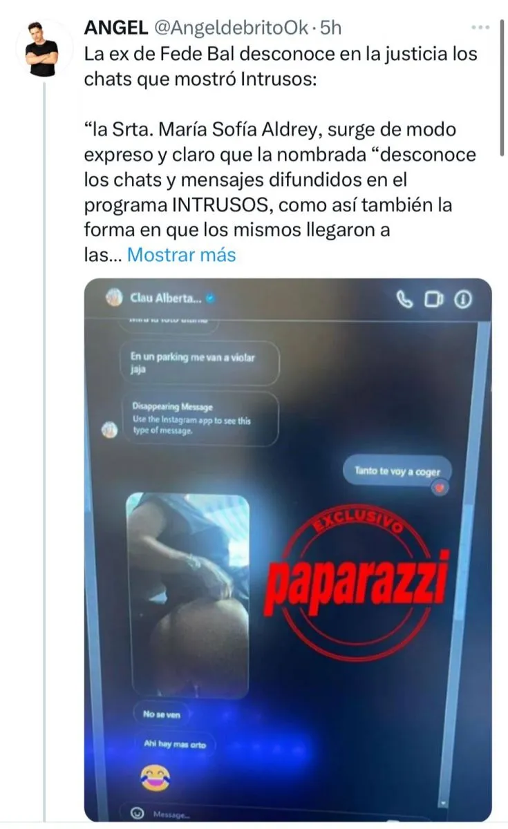 Sofía Aldrey ignoró la obtención de los chats que involucran a Fede Bal y varias famosas