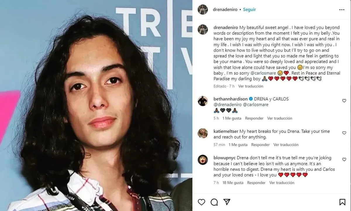 Mediante su cuenta de Instagram, Drena De Niro, quien también es actriz, compartió la triste noticia de la partida de su hijo con un emotivo mensaje y una serie de fotografías."Mi hermoso y dulce ángel", comienza el escrito.