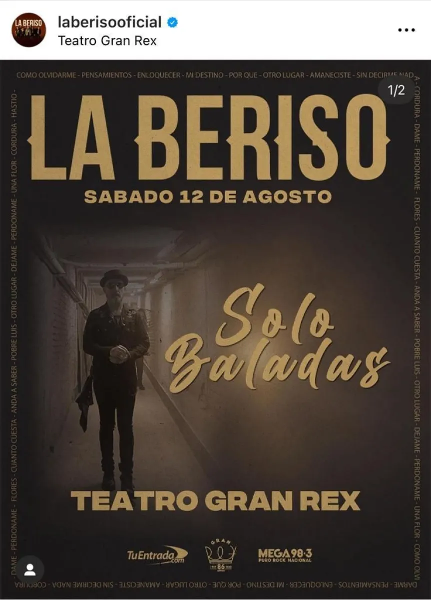 La Beriso arrancará su gira con un show en el Auditorio Sur (Temperley) el 29 de julio, después seguirá por Misiones, Chaco y Formosa y finalmente se presentará con un show de baladas en el Gran Rex, el 12 de agosto.