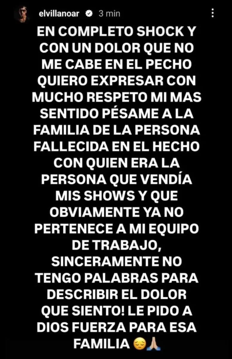 El negligente conductor era hasta hace unos días representante del cantante El Villano, y está domiciliado en González Catán, en La Matanza. Al enterarse de lo sucedido, el artista lo echó y lo hizo saber por redes sociales anoche.