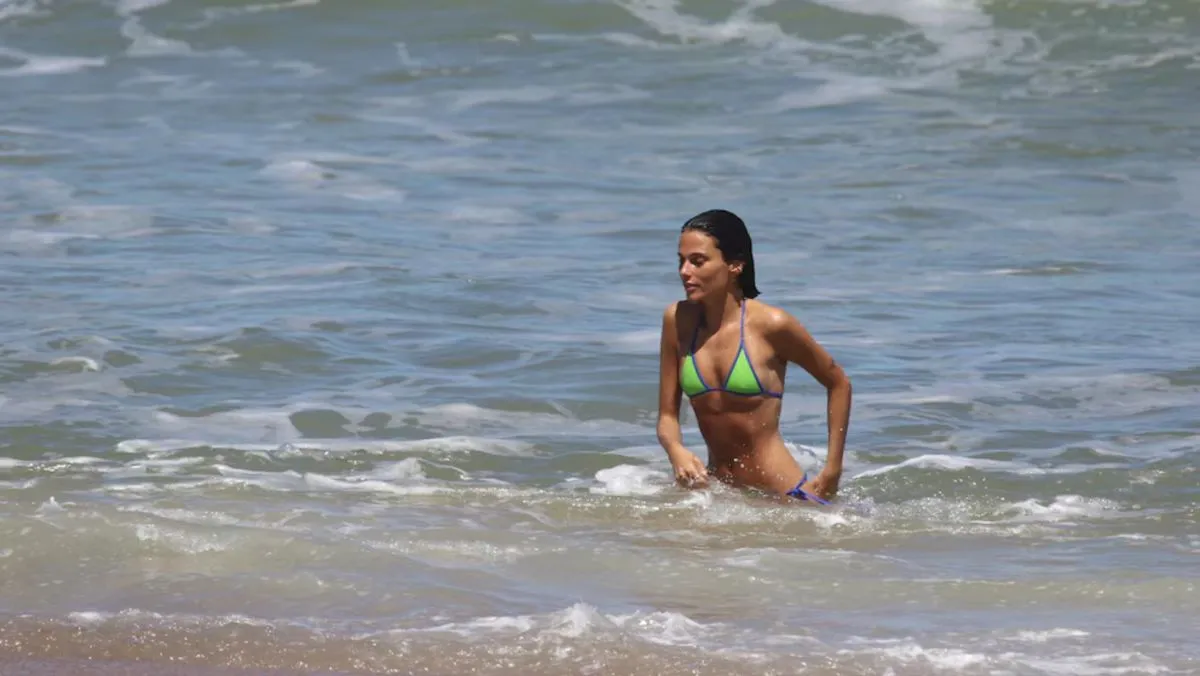 La modelo estuvo en la playa de Arenas de José Ignacio, vistiendo una microbikini underboob de color verde y con detalles de color azul. Junto a ella se encontraba su hermana Luciana y Tomi Raimon, su amigo y fotógrafo. Todos los momentos fueron captados por las cámaras de Teleshow.