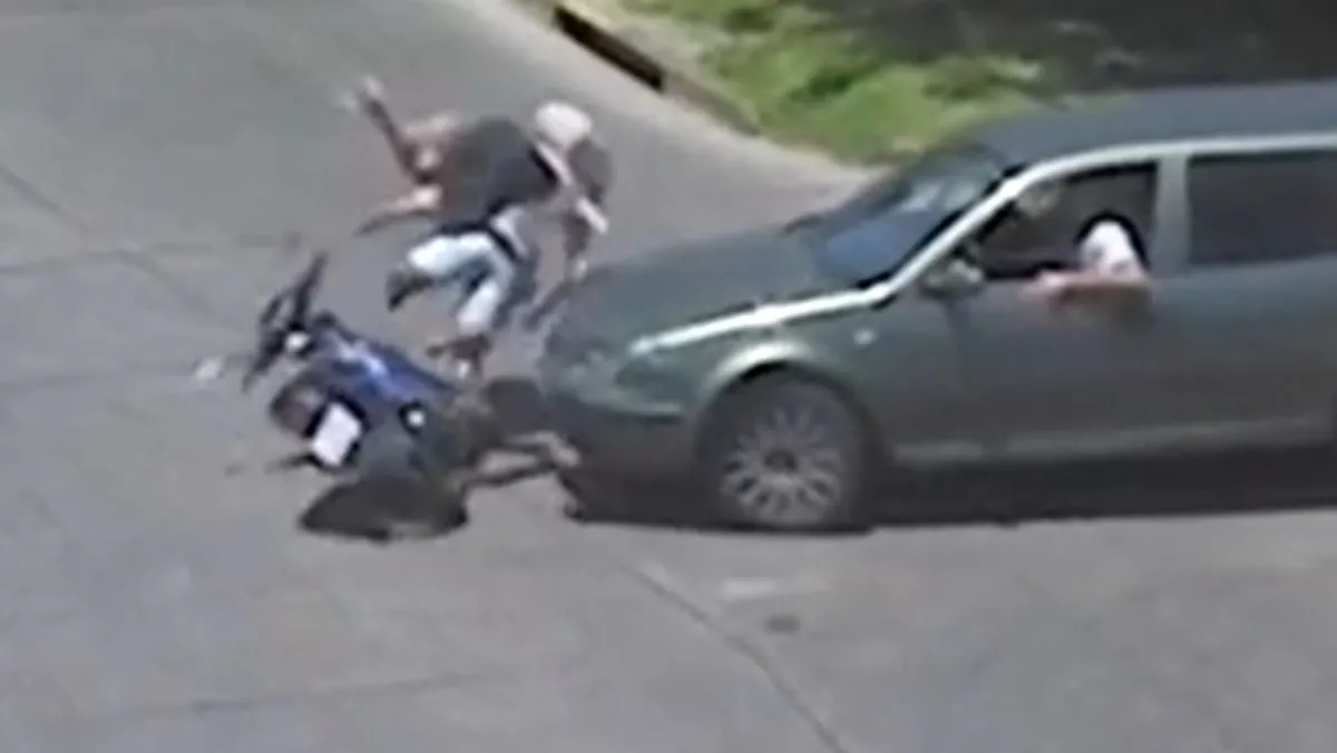 Un impactante accidente se produjo este sábado en la localidad de Tigre, Provincia de Buenos Aires, cuando dos motociclistas que circulaban por la zona centro fueron embestidos por un automóvil y salieron despedidos por el aire. Por fortuna, ninguno sufrió heridas de gravedad.