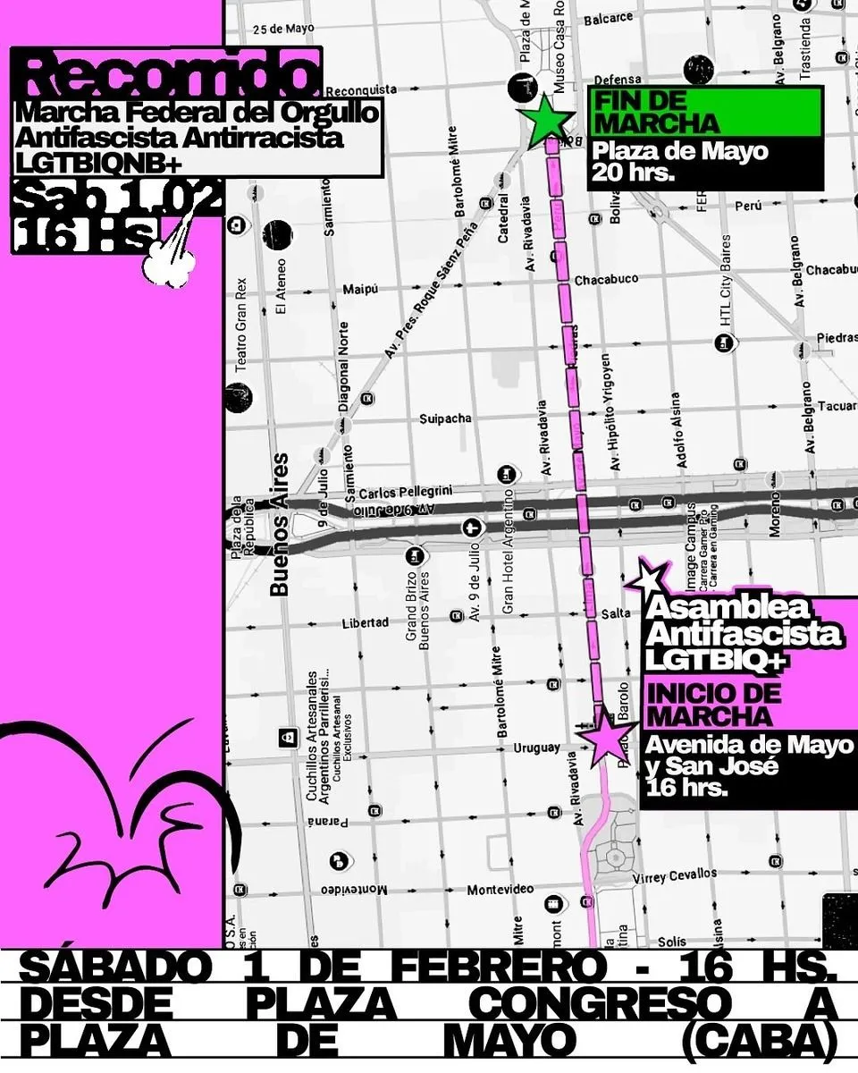 La concentración comenzará a las 16:00 en el Congreso de la Nación y finalizará en Plaza de Mayo. Se espera una gran concurrencia, con la presencia de diversas agrupaciones sociales y políticas. Habrá plazas antifascistas en CABA y distintas ciudades del país.