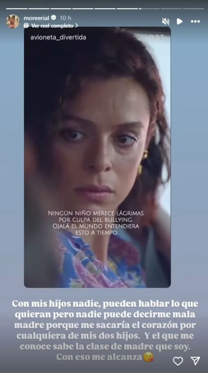 Morena escribió un mensaje personal: “Con mis hijos nadie”, escribió, en referencia a Francesco y Amadeo. Agregó: “Pueden hablar lo que quieran, pero nadie puede decirme mala madre porque me sacaría el corazón por cualquiera de mis dos hijos. Y el que me conoce, sabe la clase de madre que soy. Con eso me alcanza”.