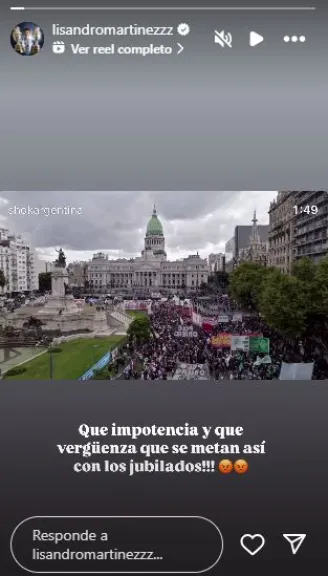 Citando un video en Instagram, Martínez posteó un duro mensaje: "Que impotencia y que vergüenza que se metan así con los jubilados". En ese sentido, el defensor es el primer jugador campeón del Mundo que opina sobre los episodios que sucedieron el miércoles pasado.