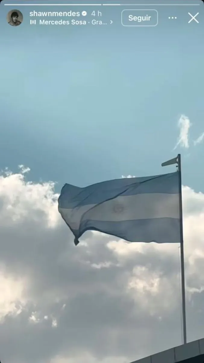 A pocos días de su presentación en el Lollapalooza Argentina 2025, Shawn Mendes llamó la atención de sus fanáticos al compartir en su cuenta de Instagram un video con una bandera argentina ondeando en el cielo, musicalizada por la canción “Gracias a la Vida”, interpretada por Mercedes Sosa.