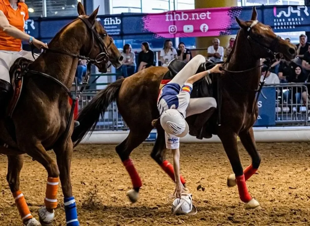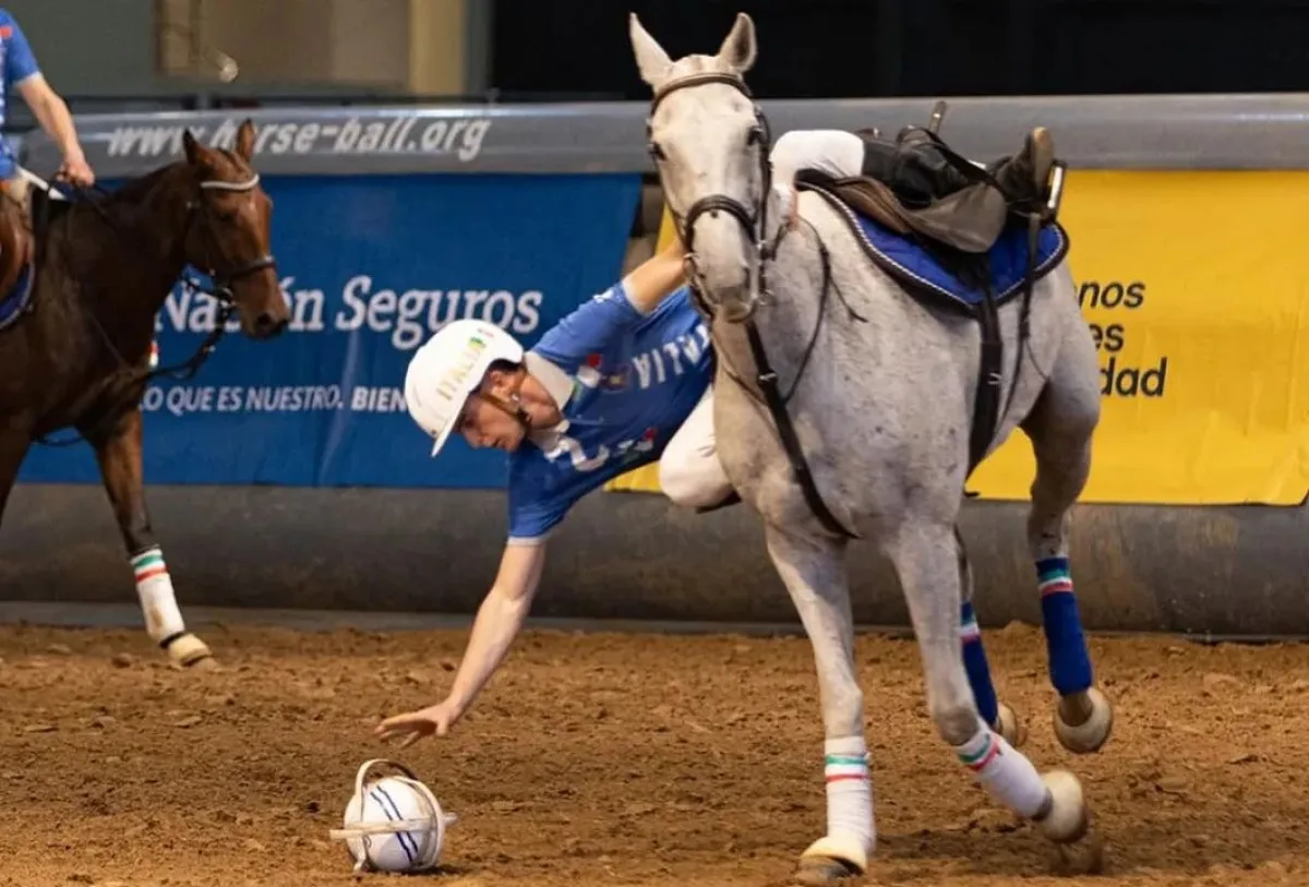 El horseball es un deporte ecuestre que combina elementos del rugby y el básquet, donde dos equipos de cuatro jugadores intentan marcar goles en el arco rival con una pelota provista de manijas. "Es como el rugby a caballo", explicó Pablo Segovia, presidente de la AAH, haciendo referencia a la dinámica de pases y contacto entre los jugadores. En Argentina, el deporte aún es incipiente, con pocos practicantes que en su mayoría provienen de disciplinas como el polo o el pato.