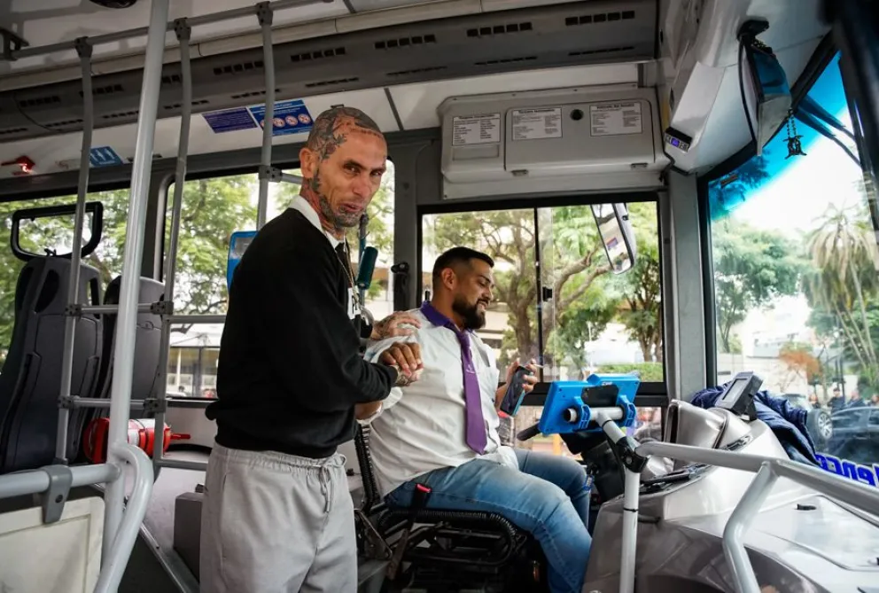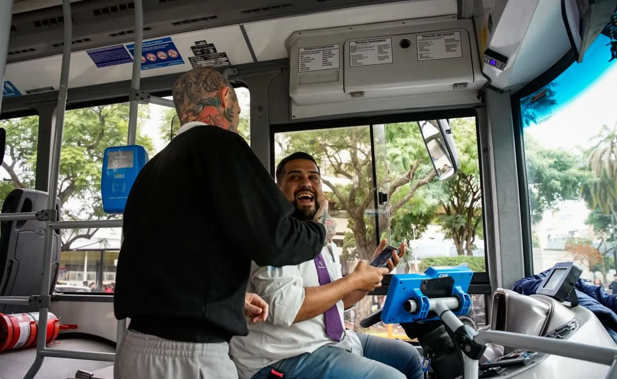 El artista salió de muy buen humor, posó y saludó a algunos fans que lo reconocieron. Hasta se animó a subir a un colectivo que estaba circulando y se sacó una foto con el chofer.