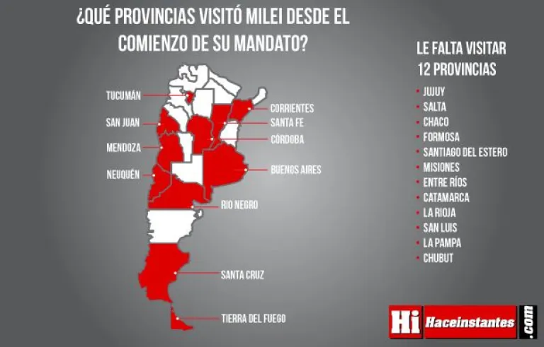Desde que asumió la presidencia de Argentina el 10 de diciembre de 2023, Javier Milei ha recorrido algunas provincias del país en el marco de su gestión, pero aún mantiene una importante deuda pendiente con muchas otras. Hasta el momento, el mandatario ha visitado Buenos Aires, Córdoba, Corrientes, Mendoza, Neuquén, Río Negro, San Juan, Santa Cruz, Santa Fe, Tierra del Fuego y Tucumán. Sin embargo, 12 provincias siguen sin recibir su presencia, lo que ha generado diversas interpretaciones y expectativas.