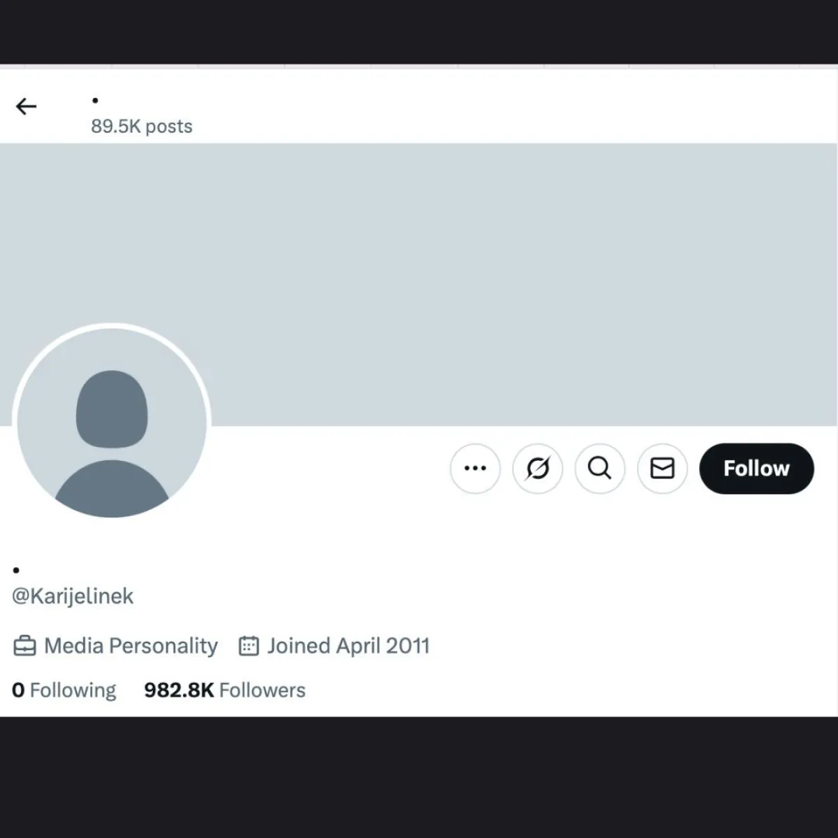 Actualmente, la cuenta @karijelinek en X presenta signos claros de haber sido intervenida: no tiene imagen de perfil ni publicaciones anteriores, y solo exhibe una publicidad vinculada a una empresa de criptomonedas de dudosa procedencia.