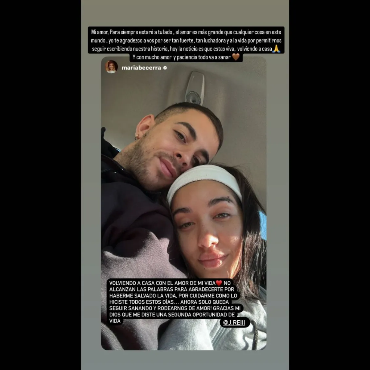 La rápida reacción de J Rei fue fundamental para que María Becerra recibiera la atención médica necesaria durante una situación crítica. Luego de haber regresado a su hogar tras varios días de preocupación por haber sufrido otro embarazo ectópico, el cantante le dedicó unas emotivas palabras a su pareja a través de las redes sociales.