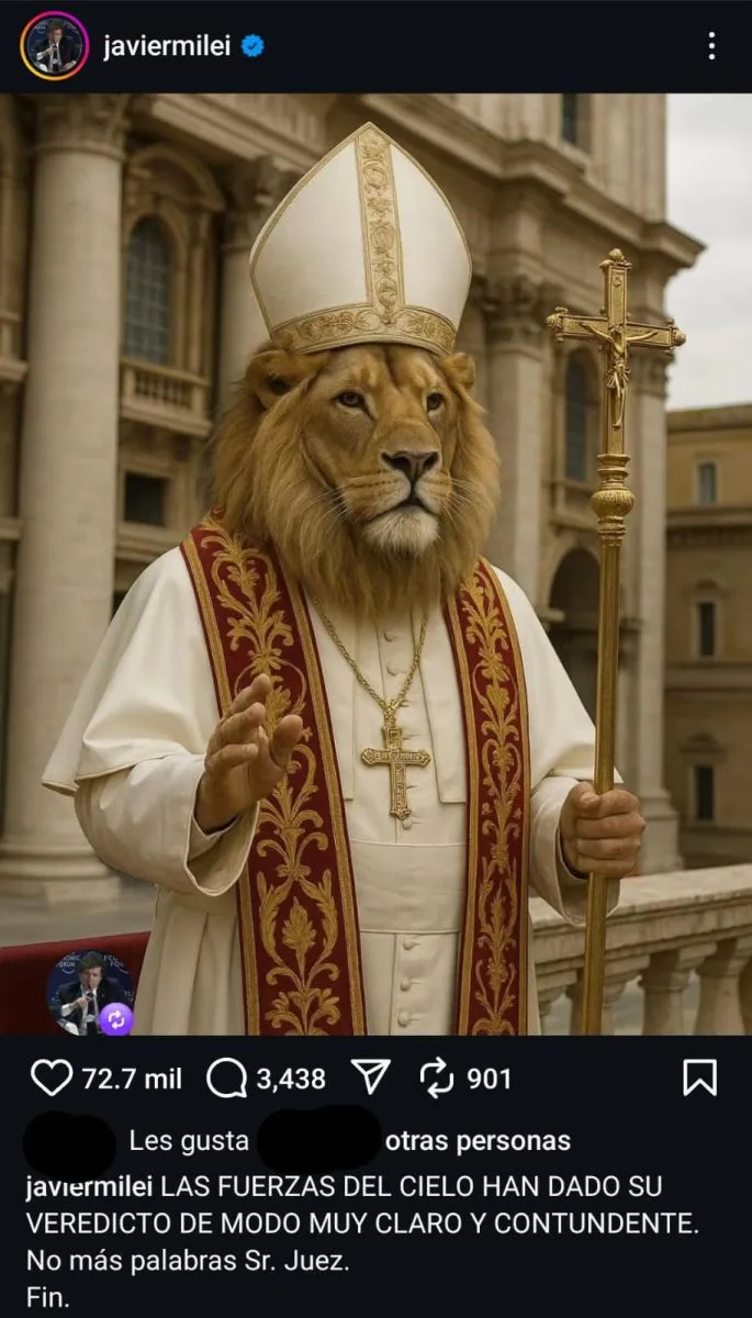 En un contexto cargado de expectativa por la elección del nuevo Papa, el presidente Javier Milei volvió a captar la atención pública con una publicación críptica en sus redes sociales. Tras confirmarse que el elegido fue León XIV, el mandatario escribió un mensaje en su cuenta de Instagram que generó múltiples interpretaciones.