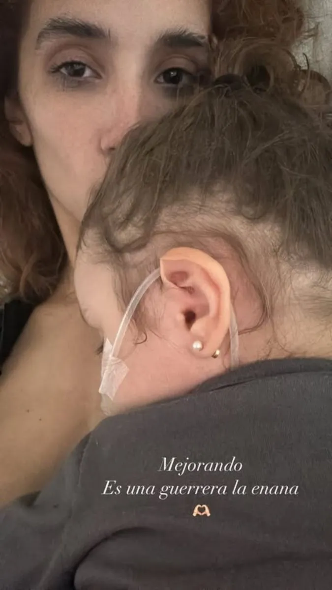 En una historia de Instagram, Melody publicó una imagen con su hija en brazos y una cánula de oxígeno en el rostro. Junto a la foto, escribió: “Mejorando. Es una guerrera, la enana.”