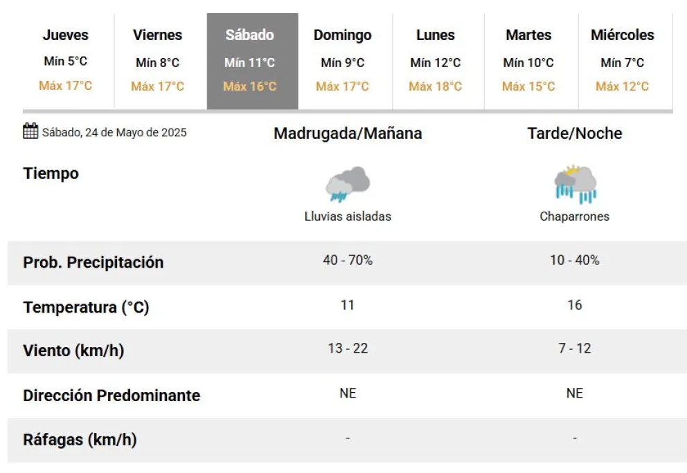 La semana en el Área Metropolitana de Buenos Aires (AMBA) se mantiene con buenas condiciones del clima, pero con las lluvias acechando para el cierre, mientras que siguen las mañanas y noches frescas, según el pronóstico del tiempo del Servicio Meteorológico Nacional (SMN). De esta manera, se extiende el buen tiempo para este jueves, que se espera con cielo parcialmente nublado durante toda la jornada, con temperaturas de entre 9 y 16 grados. Para cerrar la semana, el viernes se presentaría con cielo parcialmente nublado en las primeras horas y mayormente nublado desde la tarde, pasando a nublado en la noche; mientras que la temperatura sería de 10 grados para la mínima y 16 para la máxima. El fin de semana podría marcar el regreso de las lluvias y precipitaciones fuertes en el AMBA, de acuerdo con el SMN. Se pronostica un sábado con cielo mayormente nublado, con probabilidad de tormentas aisladas en la tarde y noche, junto con temperaturas de entre 11 y 16 grados. A diferencia de lo que fue el fin de semana pasado, en casi de concretarse las lluvias y tormentas sería, al menos por ahora, solo para el sábado, ya que el domingo regresaría el buen clima, con cielo algo nublado en la madrugada y mañana, y parcialmente nublado en la tarde y noche, con marcas de entre 12 y 18 grados. El Servicio Meteorológico Nacional (SMN) renovó para este jueves sus alertas por tormentas fuertes con posible caída de granizo, que en este caso abarcaban a localidades de al menos dos provincias; y que llegan luego de jornadas sin avisos. La semana vuelve a registrar clima inestable en diferentes partes del país, y por eso lanzaron un aviso de nivel amarillo, que rige este jueves 22 de mayo. La advertencia alcanza a regiones de las provincias Misiones y Formosa.El pronóstico del tiempo extendido en el AMBA