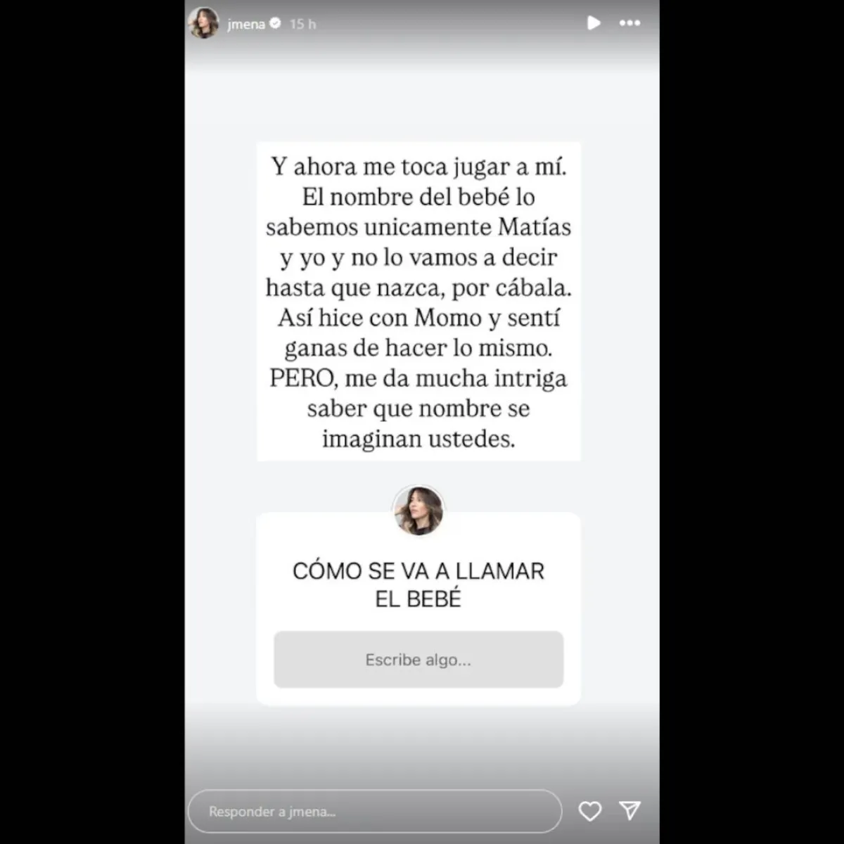 Pese a su decisión de mantener el secreto, Jimena no ocultó su interés por saber qué imaginan sus fans. “Me da mucha intriga saber qué nombre imaginan ustedes”, escribió, invitando a sus seguidores a hacer conjeturas sobre el posible nombre del futuro bebé.