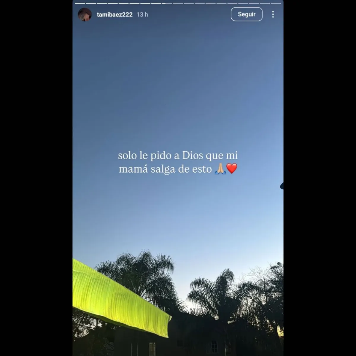 “Solo le pido a Dios que mi mamá salga de esto”, escribió Tamara en una imagen subida a su perfil de Instagram, acompañando sus palabras con un emoji de manos en señal de oración y un corazón rojo. Si bien no brindó detalles específicos sobre el diagnóstico o el cuadro clínico, dejó en claro que se trata de un momento difícil para su familia.