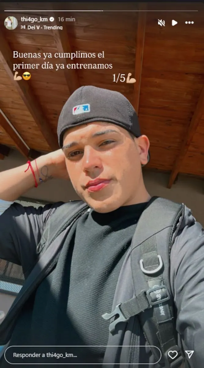 A través de sus redes sociales, el exparticipante del reality compartió imágenes de su primer día en el gimnasio. “Día uno de entrenamiento”, escribió acompañado por emojis que reflejaban esfuerzo y agotamiento. Su objetivo, según expresó, es entrenar cinco veces por semana, y ya dio el primer paso: “Ya cumplimos el primer día, ya entrenamos. 1/5”, señaló entusiasmado.