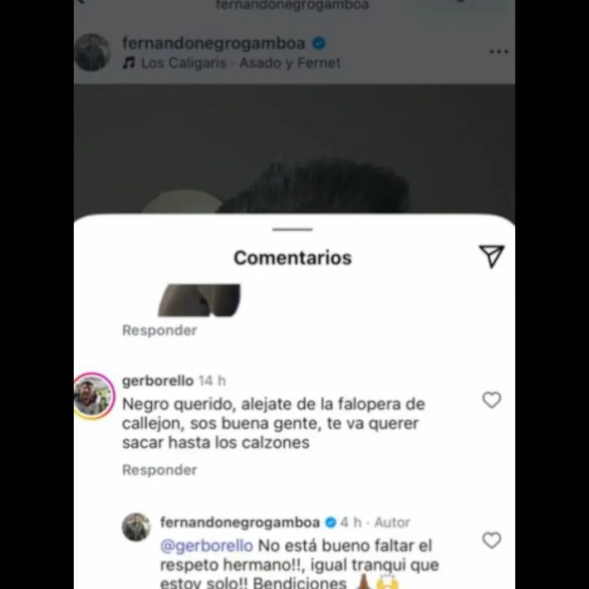 Una de las pruebas más contundentes del distanciamiento se vio en las redes sociales de Gamboa, donde un seguidor le hizo un comentario despectivo hacia Callejón. El exjugador respondió con claridad: “No está bueno faltar el respeto, hermano. Igual, tranqui, que estoy solo. Bendiciones”. Esa frase despejó cualquier ambigüedad sobre su situación sentimental.