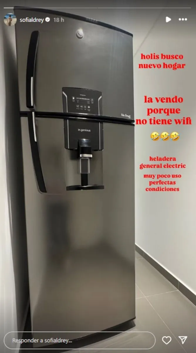 Sofía Aldrey compartió una historia en Instagram que trajo de regreso uno de los escándalos más comentados del 2023. Con humor ácido y sin nombrar a nadie, puso a la venta su heladera con una descripción que no tardó en viralizarse: “La vendo porque no tiene Wifi”.