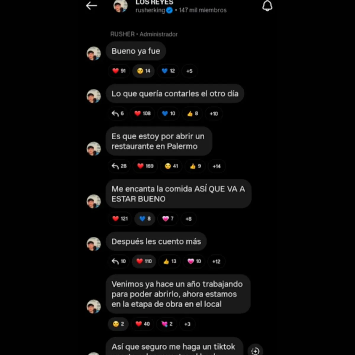 A través de una captura de pantalla compartida en sus historias, Rusherking dejó ver parte de un chat grupal en el que hablaba de su entusiasmo por el nuevo negocio. Este gesto no solo mostró su emoción, sino que también reforzó la cercanía que mantiene con su audiencia, manteniéndola informada y partícipe de su evolución profesional. El emprendimiento no es una idea reciente, sino el resultado de más de un año de planificación y trabajo.