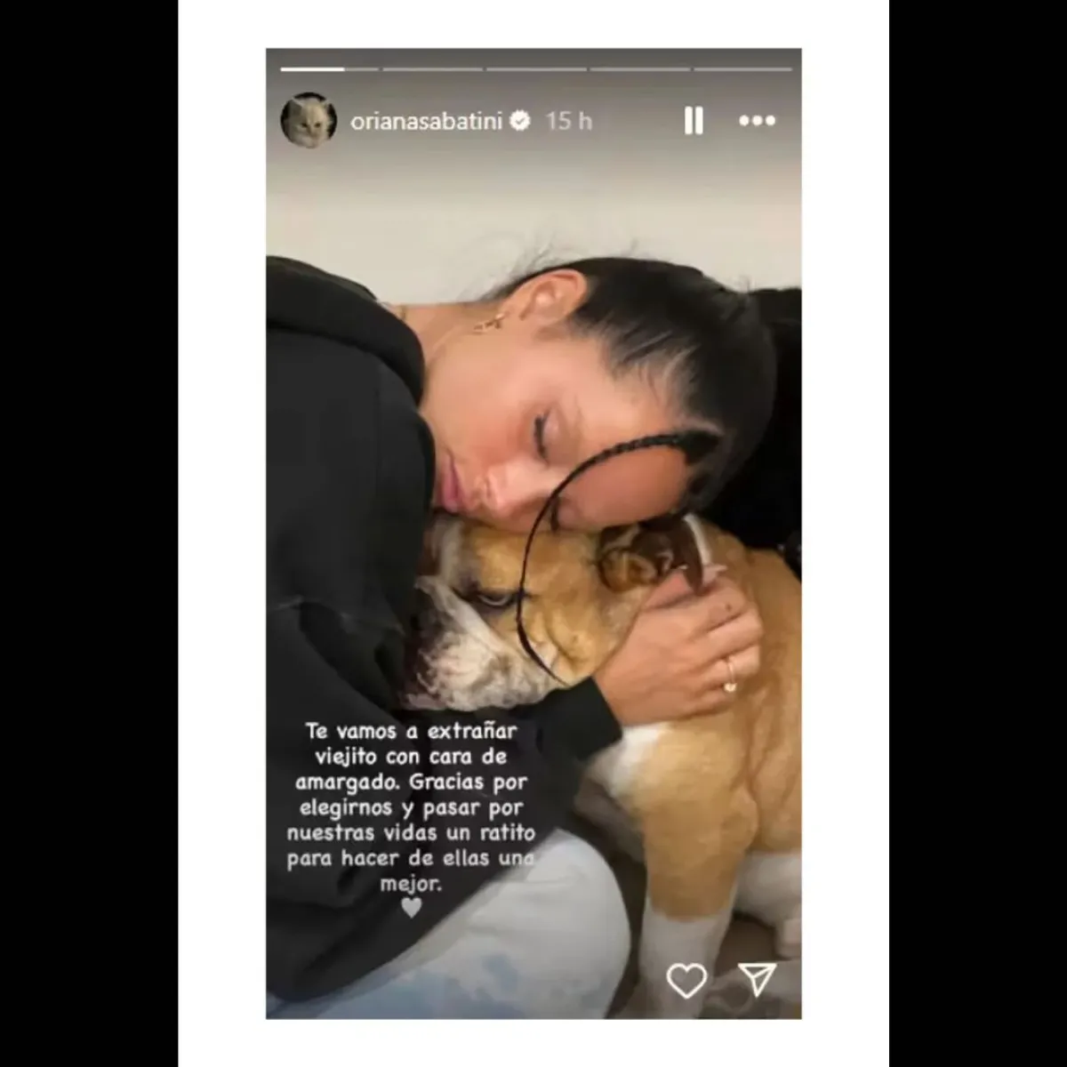 La cantante y actriz Oriana Sabatini atraviesa un momento de profundo pesar tras la muerte de su querido perro Chopper, un bulldog que fue parte fundamental de su familia durante una década. Desde Roma, donde vive junto a su pareja, el futbolista Paulo Dybala, compartió un mensaje lleno de emoción y gratitud: “Gracias por pasar por nuestras vidas un ratito para hacer de ellas una mejor. Te amo, hasta que nos volvamos a encontrar”. Junto a sus palabras, publicó una conmovedora imagen en la que se la ve abrazando a su fiel compañero.