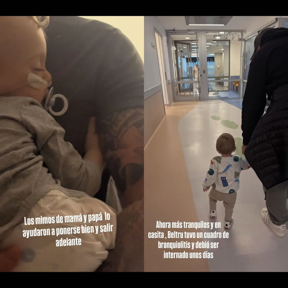 A través de historias de Instagram, Fantino y Mosqueira compartieron imágenes del proceso de recuperación del niño. En una de las fotos más emotivas, se puede ver a Beltrán caminando de la mano de su padre mientras abandonan el sanatorio. “Ahora más tranquilos y en casa, Beltru tuvo un cuadro de bronquiolitis y debió ser internado unos días”, escribieron junto a la publicación. En otras postales, el pequeño aparece rodeado de juguetes y recibiendo oxígeno, pero siempre con una expresión de curiosidad en el rostro.
