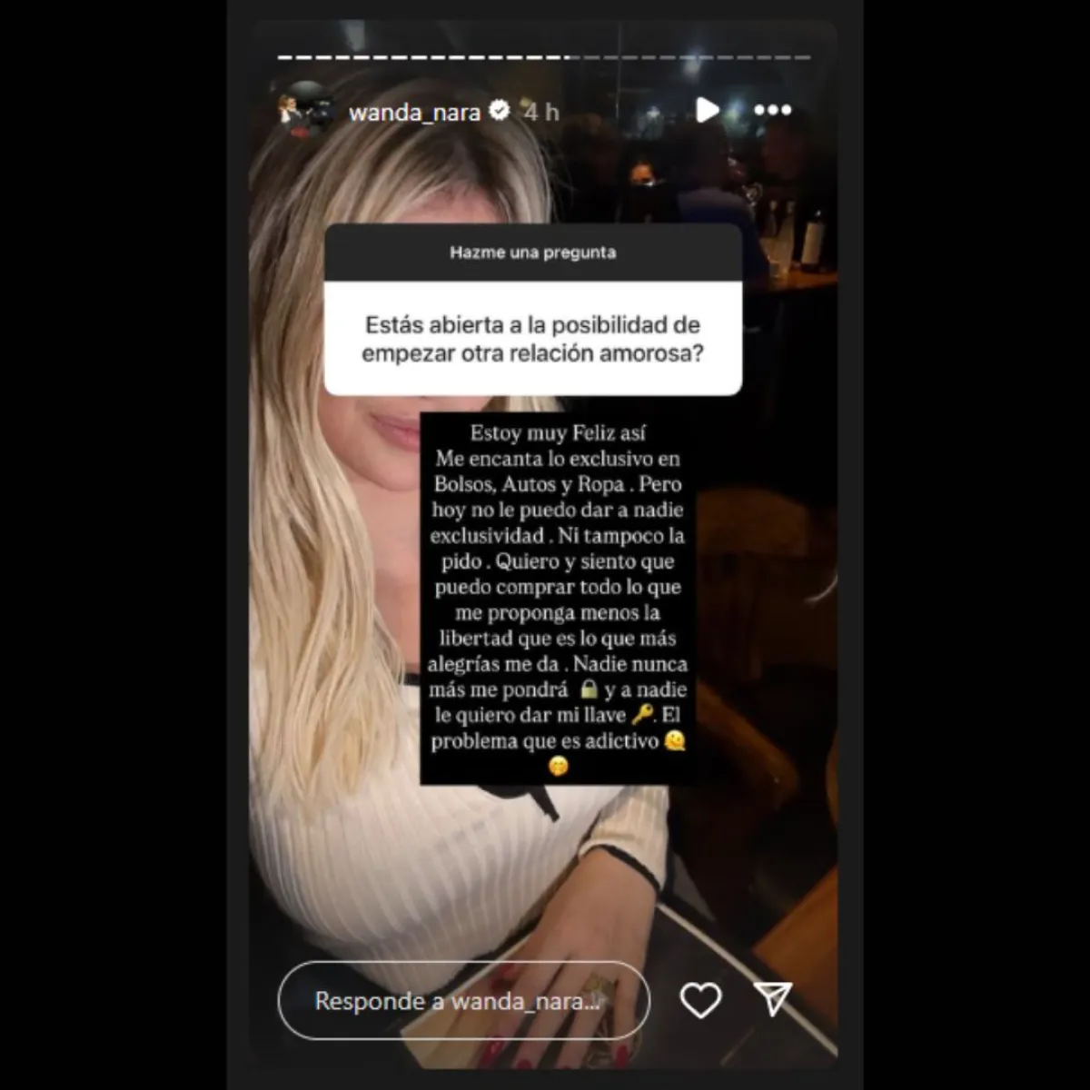 Para cerrar, la empresaria reafirmó su decisión de no depender de nadie afectivamente: “Nunca nadie más me pondrá un candado y a nadie le quiero dar mi llave. El problema es que es adictivo”. Con estas declaraciones, Wanda Nara dejó en claro que su prioridad actual es mantener su autonomía, disfrutando del presente sin presiones externas ni ataduras emocionales.