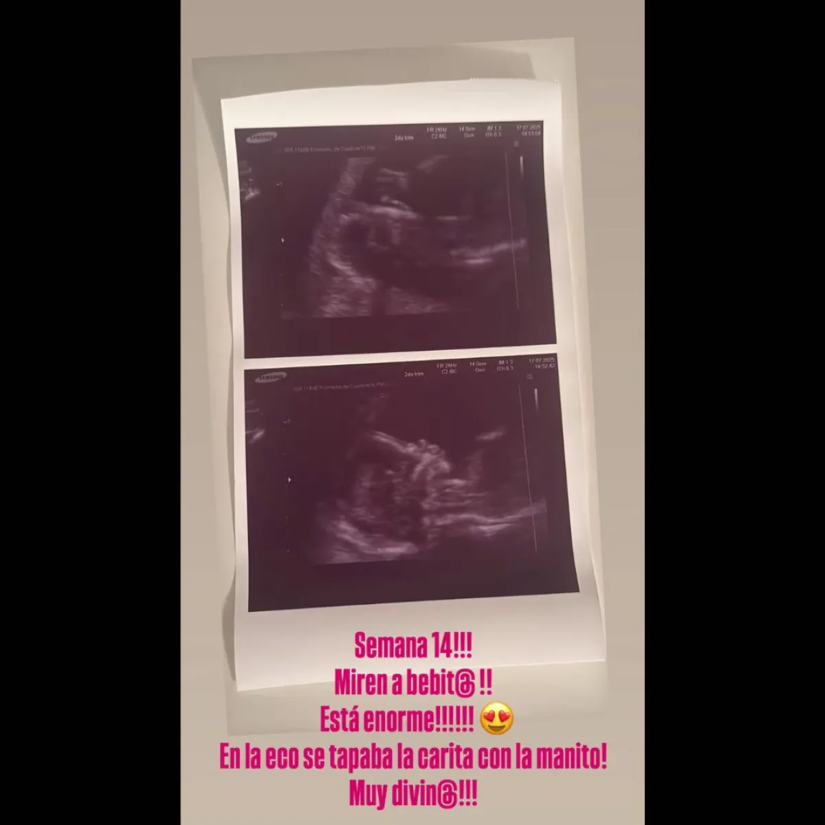 Rocío Marengo atraviesa un momento de enorme felicidad mientras vive a pleno su primer embarazo, el cual anunció hace casi un mes con una gran carga emotiva. Desde entonces, la actriz y mediática ha decidido mantener informados a sus seguidores sobre cada avance en la dulce espera. Este viernes, desde sus redes sociales, compartió nuevas imágenes de su bebé en gestación, con una ecografía que la emocionó profundamente. “¡Semana 14! ¡Miren qué ‘bebit@’! ¡Está enorme!”, escribió en una historia de Instagram.