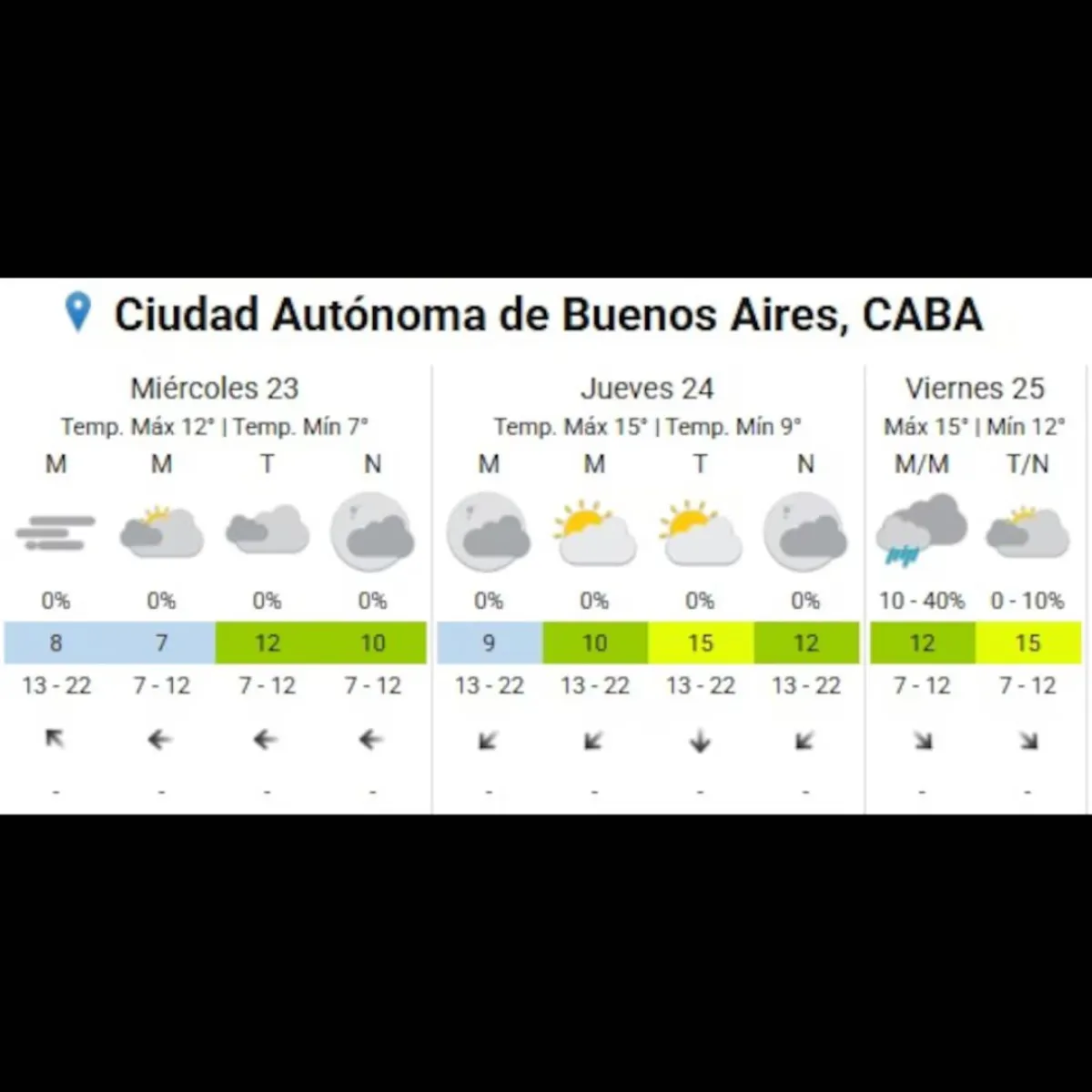 El lunes se presentó con máximas cercanas a los 20°C, pero el cambio de dirección del viento hacia el sur trajo consigo aire más fresco. Este martes 22, la situación comenzó a modificarse con la llegada del frente frío que provocó nubosidad variable e inestabilidad hacia la tarde. Para el miércoles 23, el SMN anticipa una mínima de apenas 7 grados, con una máxima que no superará los 12°C. Se prevé cielo mayormente cubierto y presencia de neblina en horas de la madrugada, con viento del este.
