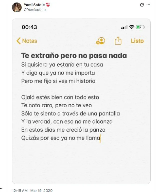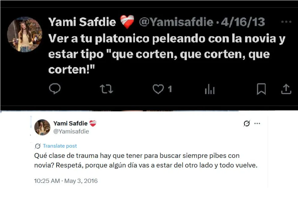 Yami Safdie, en el centro de la polémica por un "carpetazo" de tuits ofensivos