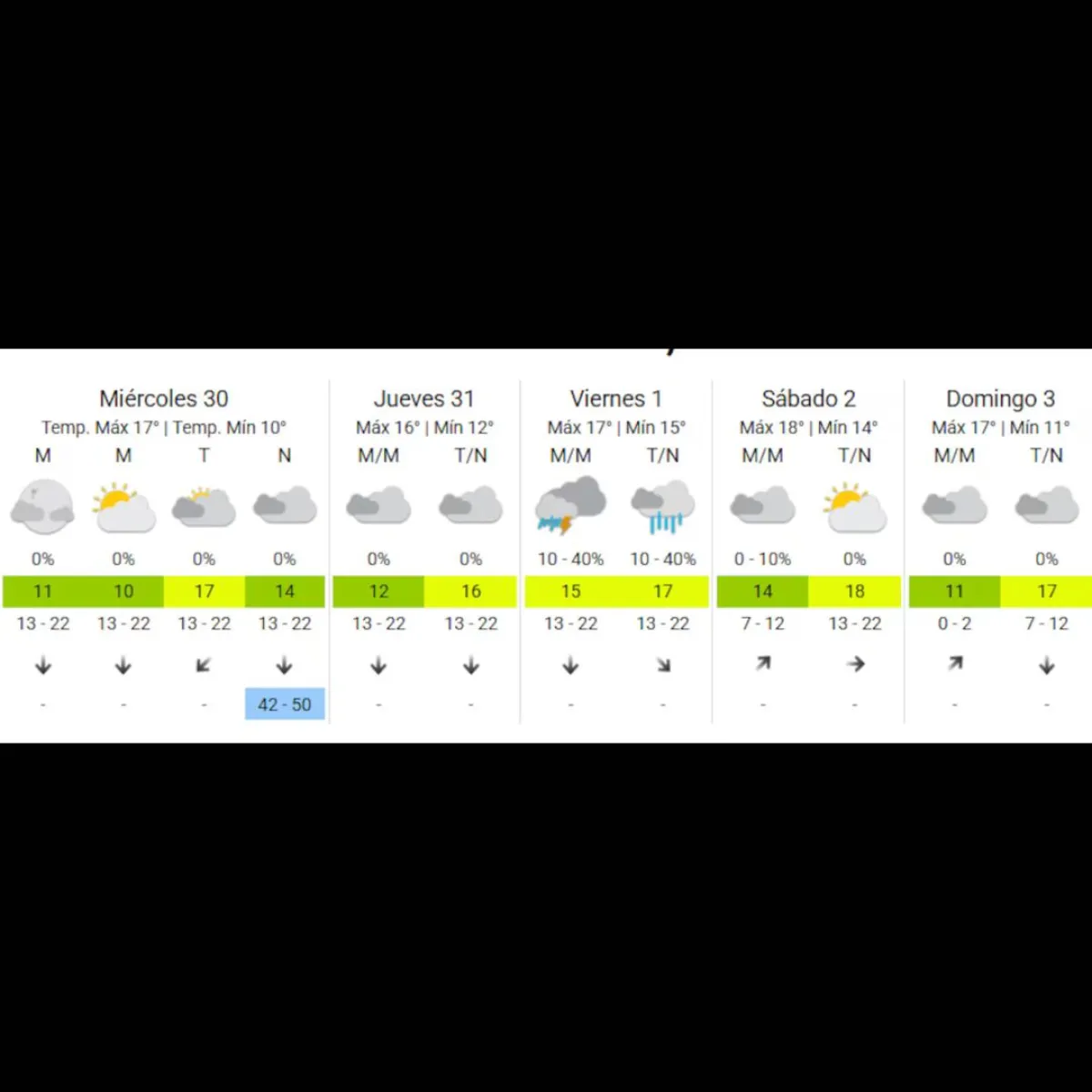 Para el fin de semana, se espera una leve mejora. El sábado 2 presentará cielo mayormente nublado, con algunas chances de lluvias débiles por la mañana (alrededor del 10%), y una temperatura que irá de 14 a 18 grados. El domingo 3, en tanto, tendrá condiciones similares: cielo cubierto y temperaturas entre 11 y 17 grados, sin precipitaciones significativas previstas.