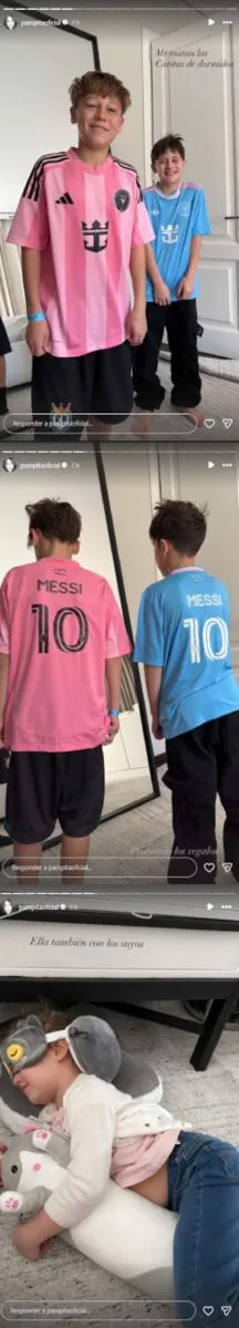 Como parte de la sorpresa, la conductora les llevó regalos personalizados desde España. Para los varones, eligió camisetas de fútbol de Lionel Messi, mientras que para Ana preparó un set especial de descanso con antifaz de conejito, almohada y peluche a juego.