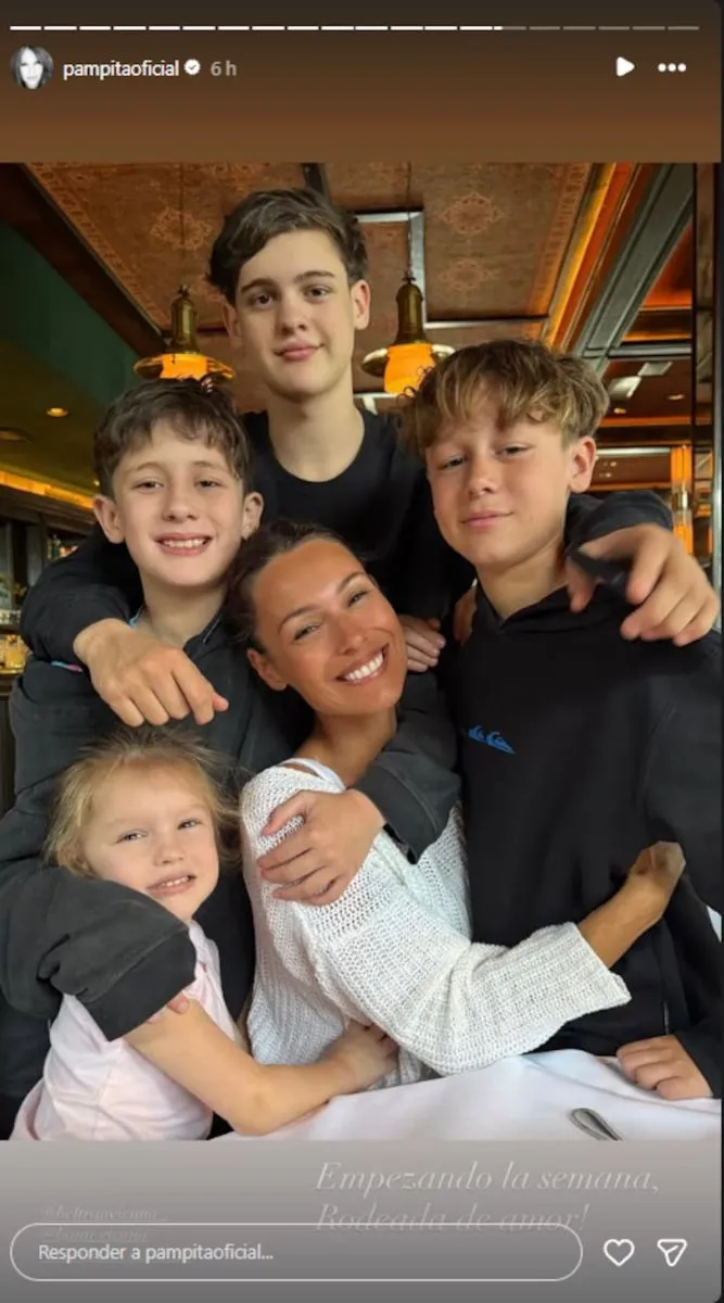 A través de sus historias de Instagram, Pampita publicó imágenes del reencuentro con Bautista, Benicio y Beltrán Vicuña, y con la pequeña Ana García Moritán. “Rodeada de amor”, escribió junto a una foto grupal que reflejaba el afecto familiar.