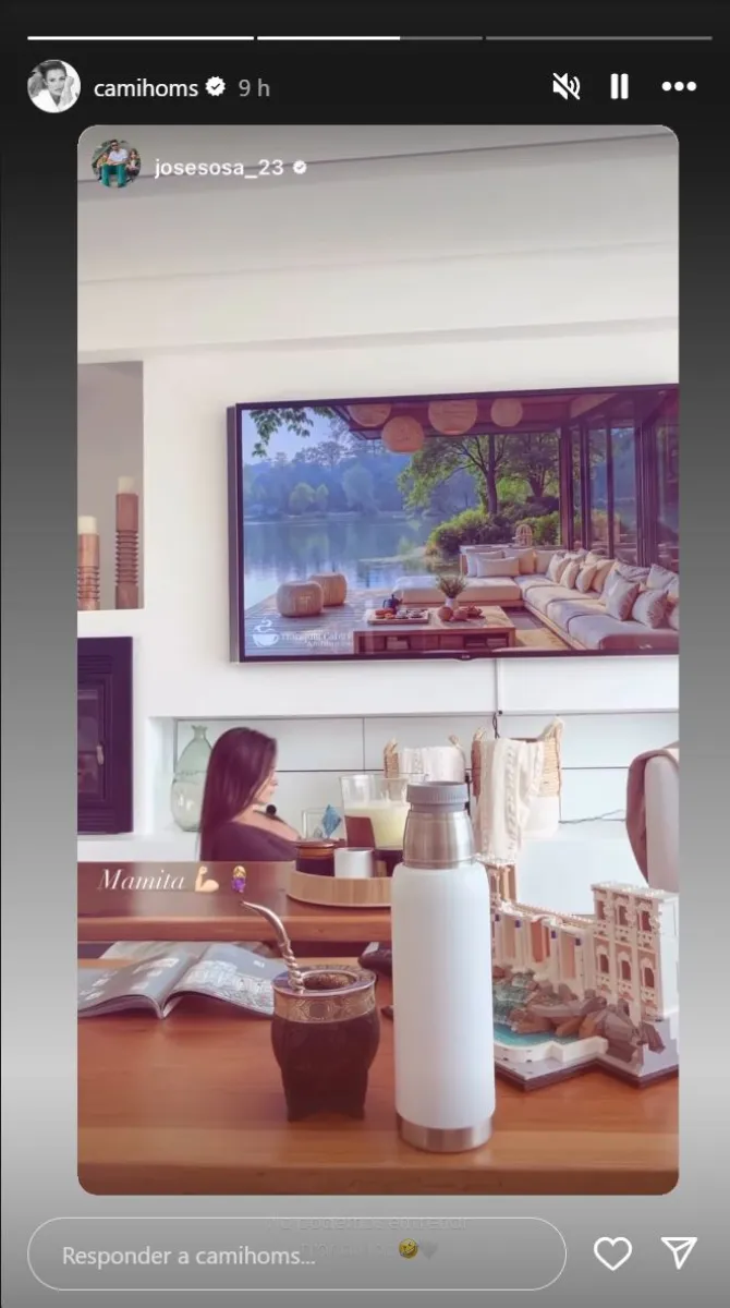 Cami Homs compartió en sus redes sociales un video que deja ver su rutina diaria en plena espera de su tercer hijo, el primero en común con el futbolista José “Principito” Sosa. En la storie, la modelo aparece entrenando, acompañada por la calidez de su hogar. A la imagen, le sumó la palabra: “Mamita”, junto a un emoji de brazo fuerte y otro de bebé.