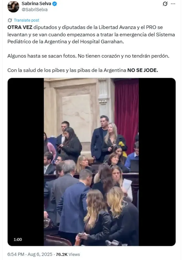 La Cámara de Diputados tuvo este miércoles a una sesión especial que fue solicitada por bloques de la oposición, que tras el primer revés para el Gobierno de Javier Milei por la media sanción a la Ley de Financiamiento Universitario, también aprobó la emergencia pediátrica en el Hospital Garrahan. La iniciativa tuvo 159 votos positivos, 67 negativos y 4 abstenciones. Los bloques de La Libertad Avanza y el PRO fueron los que no apoyaron el proyecto que busca mejorar la situación del hospital pediátrico. Incluso, legisladores oficialistas y del PRO se levantaron de sus sillas cuando se empezó a tratar la emergencia del Sistema Pediátrico de la Argentina y del Hospital Garrahan. La sesión especial fue solicitada por bloques de la oposición entre los que se destacan Unión por la Patria, Democracia para Siempre, Encuentro Federal, la Coalición Cívica y Por Santa Cruz, que buscaron llevar al debate en el recinto más de una decena de iniciativas que podrían generar nuevos vetos del Presidente. Entre las iniciativas que se trataron se encuentran proyectos para garantizar el financiamiento universitario, la crítica situación del Hospital Garrahan y otros proyectos presentados por gobernadores provinciales. El extenso temario no incluyó sin embargo el rechazo a los polémicos vetos del presidente Milei a aumentos a jubilados, moratoria previsional y emergencia en el área discapacidad que fueron anunciados la semana pasada pero oficializados este lunes.