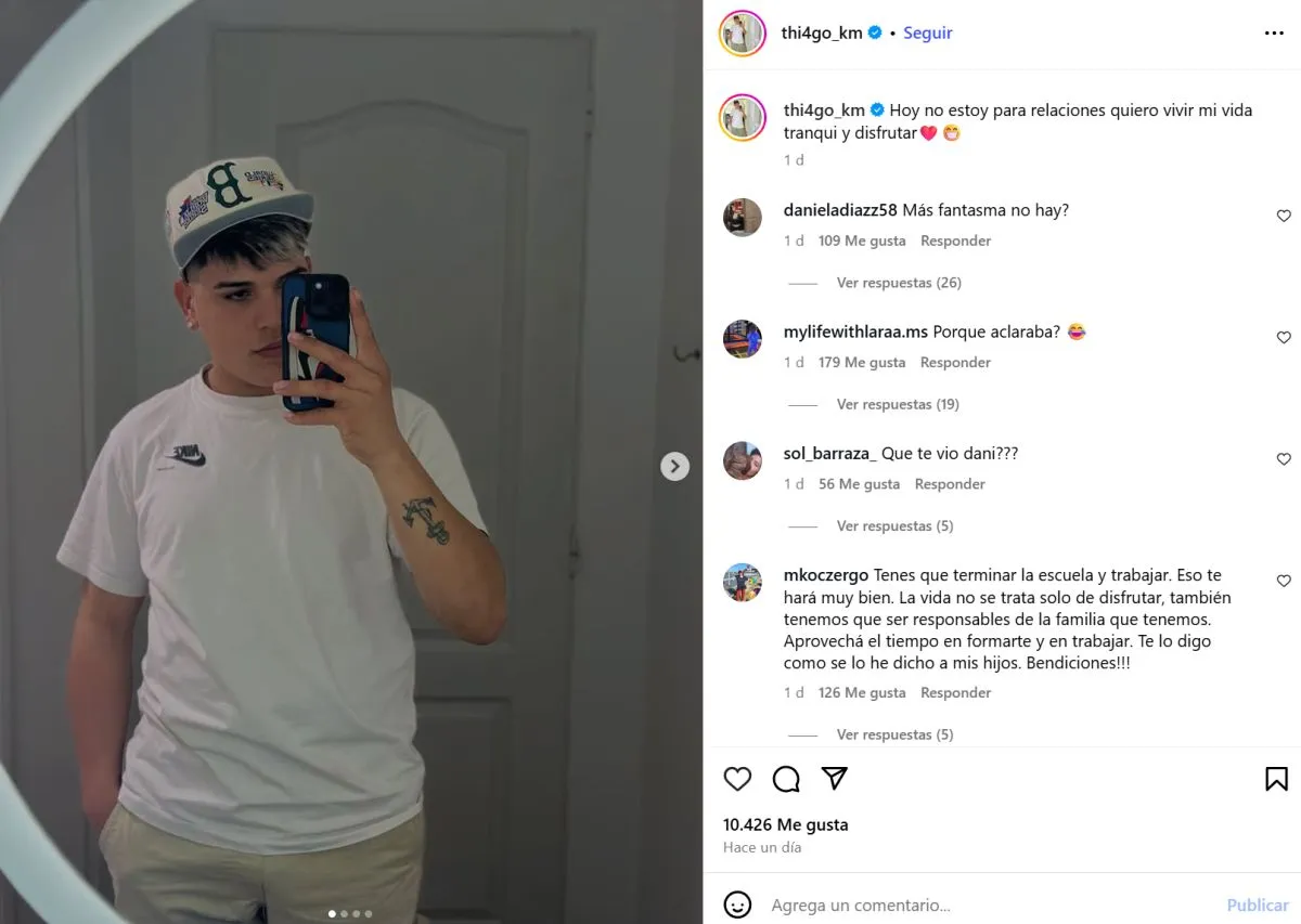 Horas después, el influencer reforzó su mensaje con un posteo en su feed de Instagram. Allí, junto a fotos frente al espejo, escribió: “Hoy no estoy para relaciones, quiero vivir mi vida tranqui y disfrutar”. No es la primera vez que su nombre se vincula con una ex GH, ya que semanas atrás también se lo relacionó con Belén Etchart, de la edición 2015.