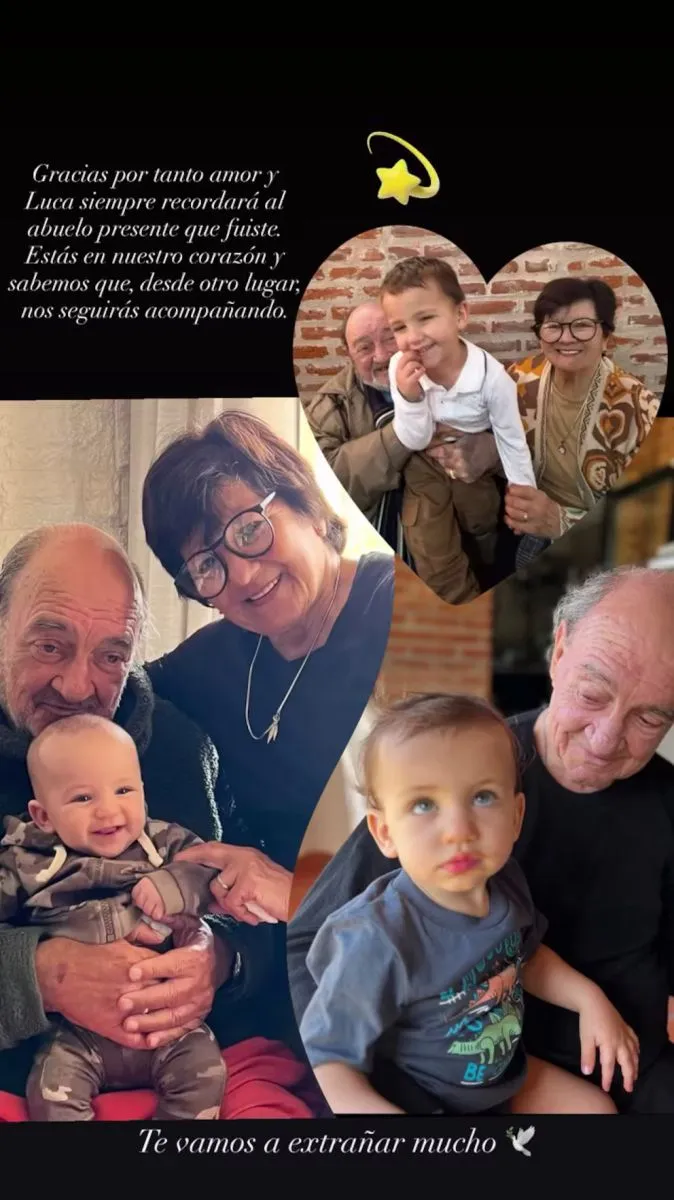 Mica escribió: “Luca va a recordar siempre al abuelo presente que fuiste. Gracias por tanto amor. Estás en nuestro corazón y sabemos que desde otro lugar nos seguirás acompañando. Te vamos a extrañar mucho”. El posteo incluyó postales familiares que muestran momentos de ternura y unión entre abuelo y nieto.