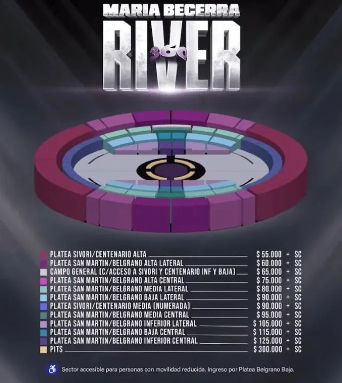 - Platea Sivori / Centenario Media (numerada): $90.000