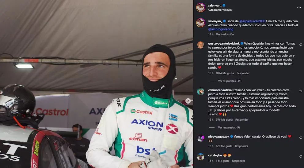 Gustavo Yankelevich expresó su orgullo a través de un comentario emotivo: “Valen querido, hoy vimos con Tomás tu carrera por televisión; nos emocionó y nos enorgulleció que estuvieras ahí, de alguna manera representando a nuestra familia”.