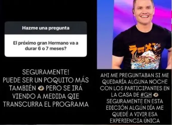 Por último, le preguntaron: "El próximo Gran Hermano va a durar 6 o 7 meses?", a lo que el conductor respondió: "Seguramente! Puede ser un poquito más también, pero se irá viendo a medida que transcurra el programa".