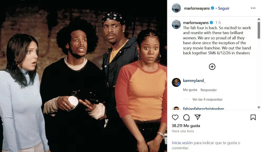 Marlon Wayans ya comenzó a generar expectativa en redes sociales. En Instagram, publicó una imagen de la película original con un mensaje dirigido a sus compañeras de elenco: “Los cuatro fabulosos están de vuelta. Muy emocionado de trabajar y reunirme con estas dos mujeres brillantes. Estamos muy orgullosos de todo lo que han hecho desde el comienzo de la franquicia de películas de terror. Salimos de la banda juntos de nuevo SM6 6/12/26 en cines”.