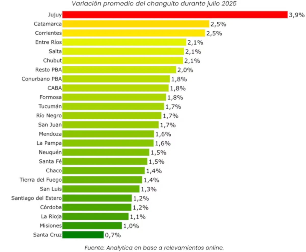 El relevamiento, denominado “Changuito Federal”, midió los precios de alimentos y bebidas en las plataformas online de los principales supermercados. Para asegurar la comparación, se mantuvieron las mismas marcas y presentaciones en todos los distritos. Los datos mostraron que Jujuy, Catamarca y Corrientes fueron las provincias con las mayores subas mensuales, con alzas de hasta 3,9%, mientras que en Misiones y Santa Cruz los incrementos quedaron por debajo del 1%.