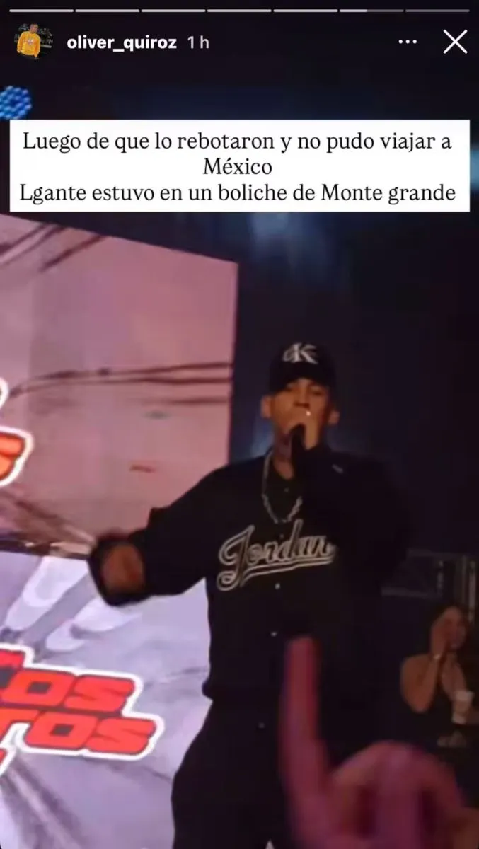 Tras el frustrado viaje, L-Gante tomó una decisión inesperada. Según un video compartido por el cronista Oliver Quiroz, en lugar de irse del país, se mostró disfrutando de la noche en un boliche de Monte Grande, acompañado de amigos y fanáticos.