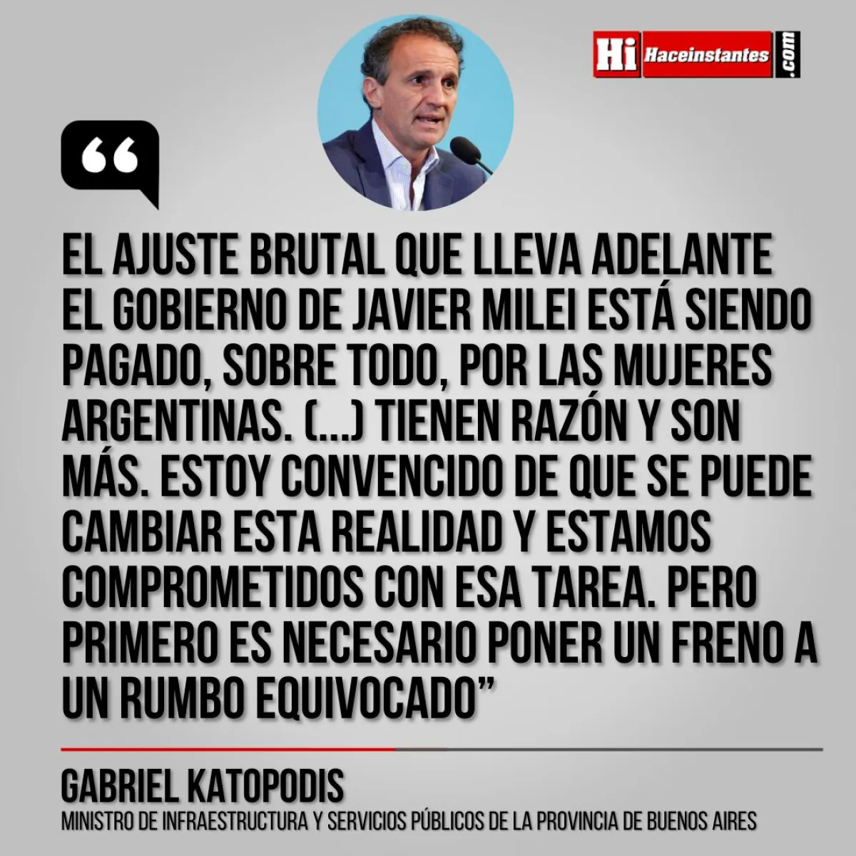 El ministro de Infraestructura bonaerense, Gabriel Katopodis, cuestionó con dureza las políticas económicas del presidente Javier Milei y advirtió que las principales perjudicadas por el rumbo actual son las mujeres argentinas.