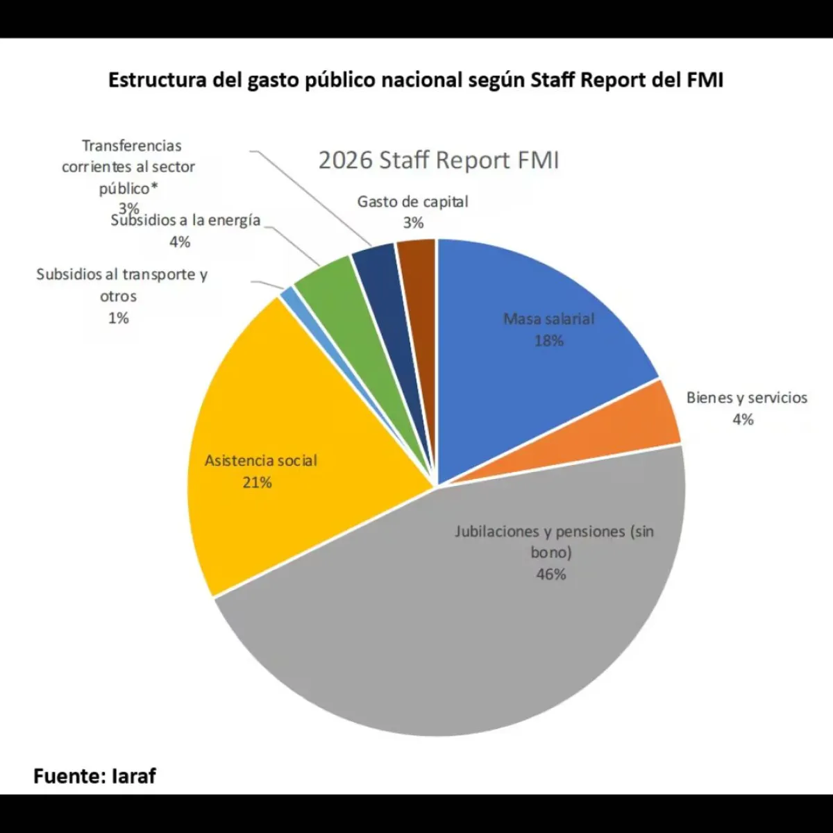 El Fondo Monetario Internacional (FMI) proyecta un cambio significativo en la estructura del gasto público de Argentina. Según el Staff Report publicado en agosto, en 2026 las jubilaciones y pensiones absorberán el 46% del gasto primario, mientras que en 2023 representaban apenas el 34%. Este aumento refleja un crecimiento sostenido del sistema previsional, en paralelo a una reducción en otros rubros tradicionales del gasto estatal.