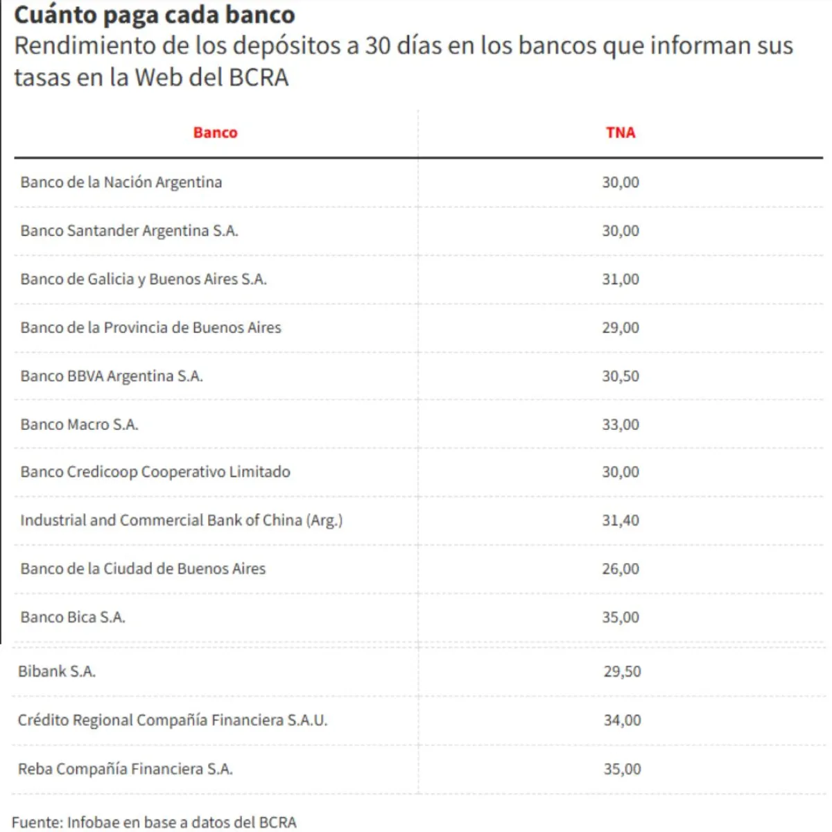 Entre los grandes bancos, Banco Macro se destaca con un 53,5% para depósitos a plazo fijo, y llega al 56% para clientes Selecta y Preferencial. Otras entidades privadas líderes como Galicia, Supervielle, BBVA y Santander presentan tasas superiores al 50%, aunque los datos reportados al BCRA muestran cifras algo menores que las anunciadas públicamente.